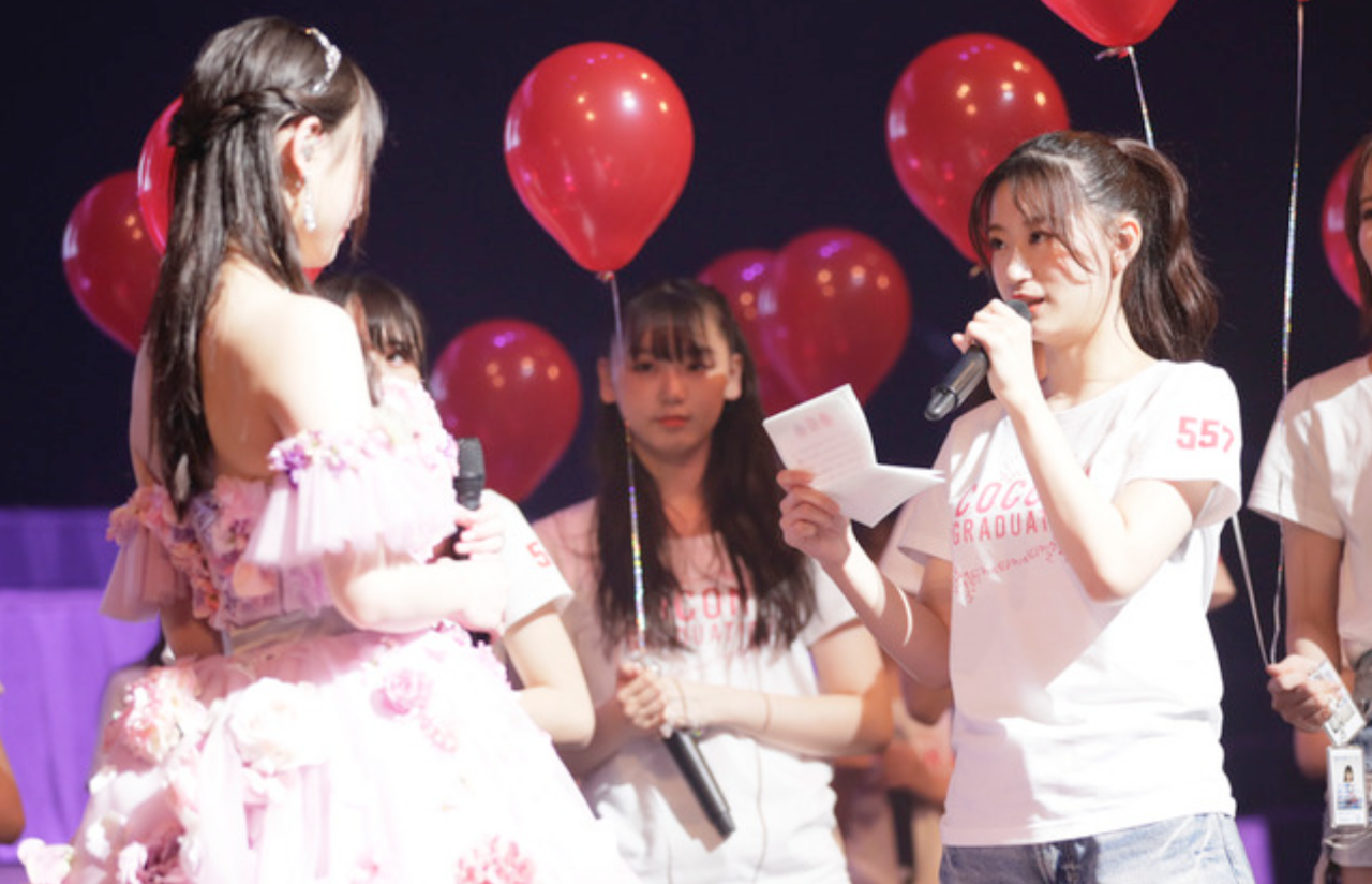 れい「NMB卒業して勉学に励むって言ってたけど、ホンマに本物のお餅と同じくらい頭がモチモチのココナなので不安な部分もあるんですけど(笑) この場所(NMB)でやり切ったので大丈夫だと信じています!」