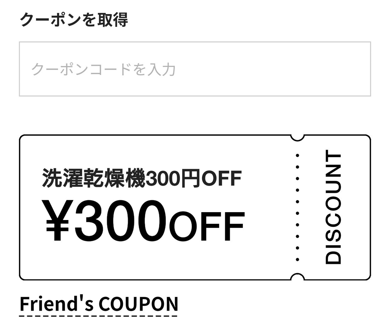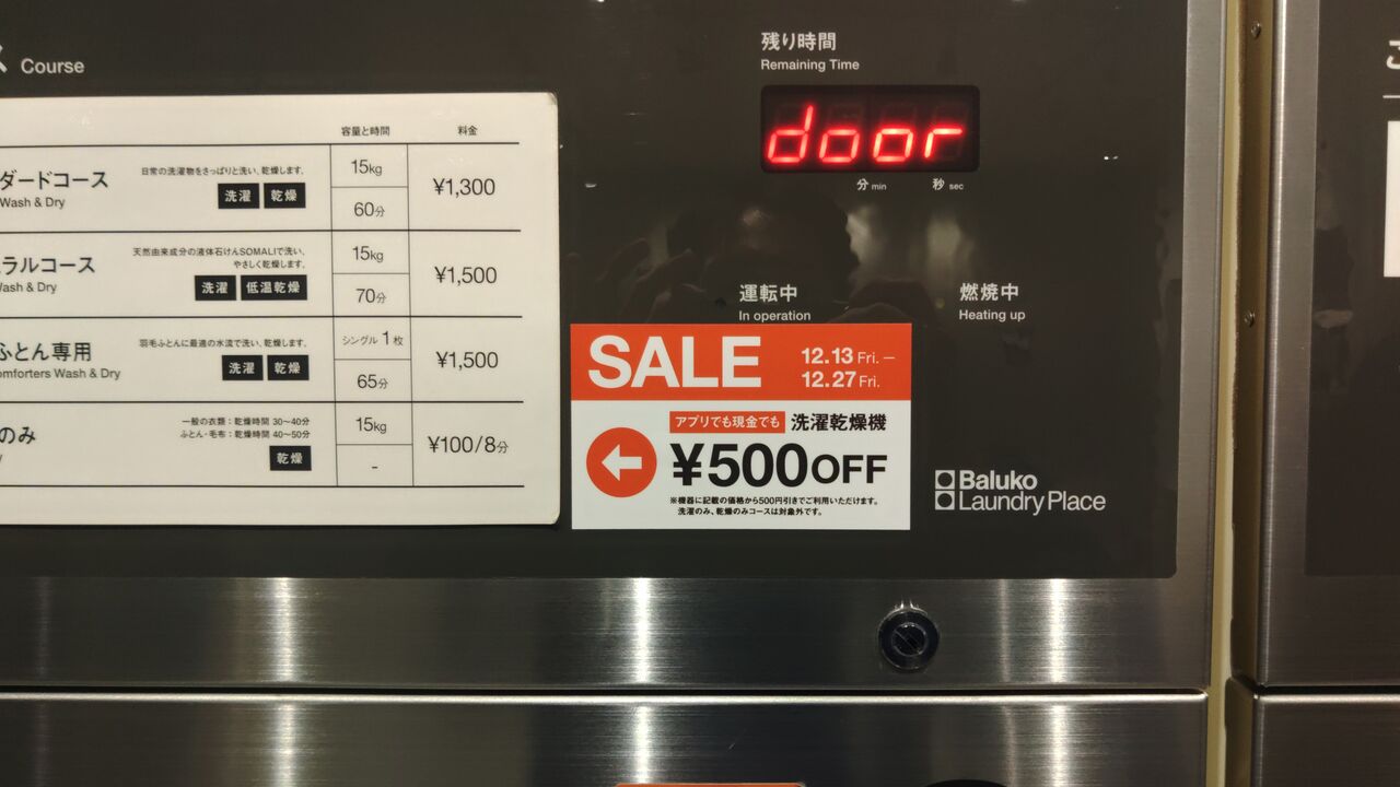 初回利用時に使えるおためしクーポンがあります。バルコランドリーの料金は洗濯が500円。乾燥が300円からとなっていて、他店のコインランドリーより100円高く設定されています。なので初回はクーポンで試してから継続利用を考えましょう
