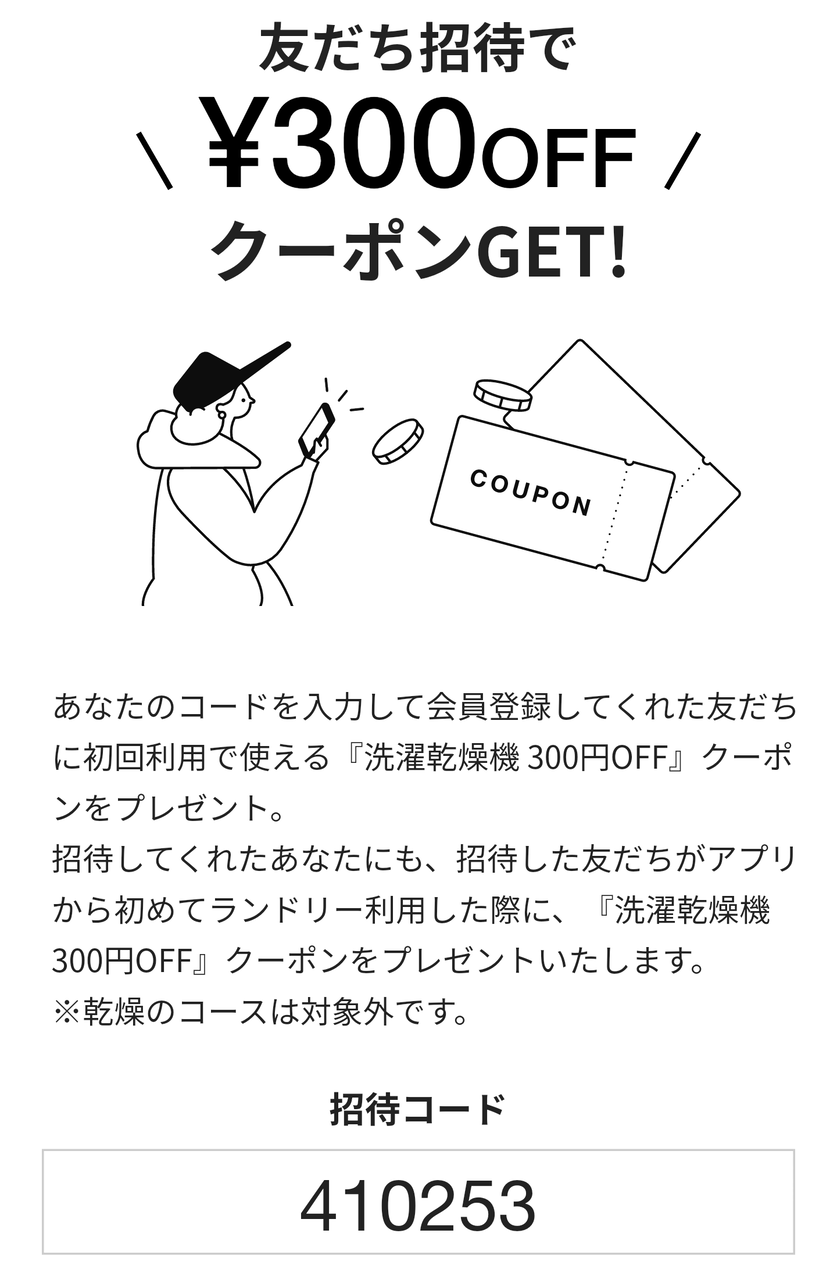 急な洗濯機の故障などにコインランドリー利用する時はお得な招待コードを利用してみてはいかがでしょうか?