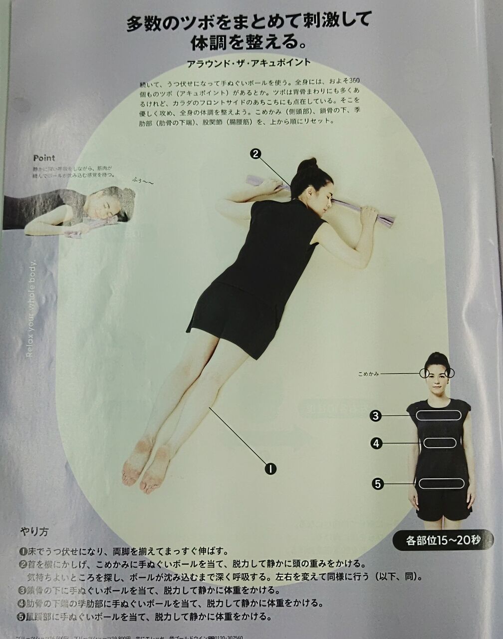 タオルとボールでセルフマッサージしていきます。ダイエット効果もあります